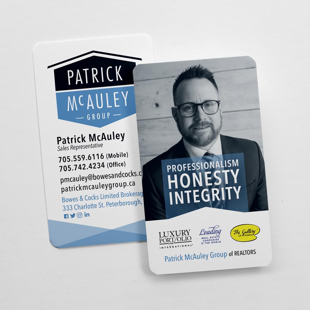 A badge style logo that evokes trust and integrity, in a unique colour scheme that is instantly recognized as “Patrick McAuley”, with branding to match carried across print materials.