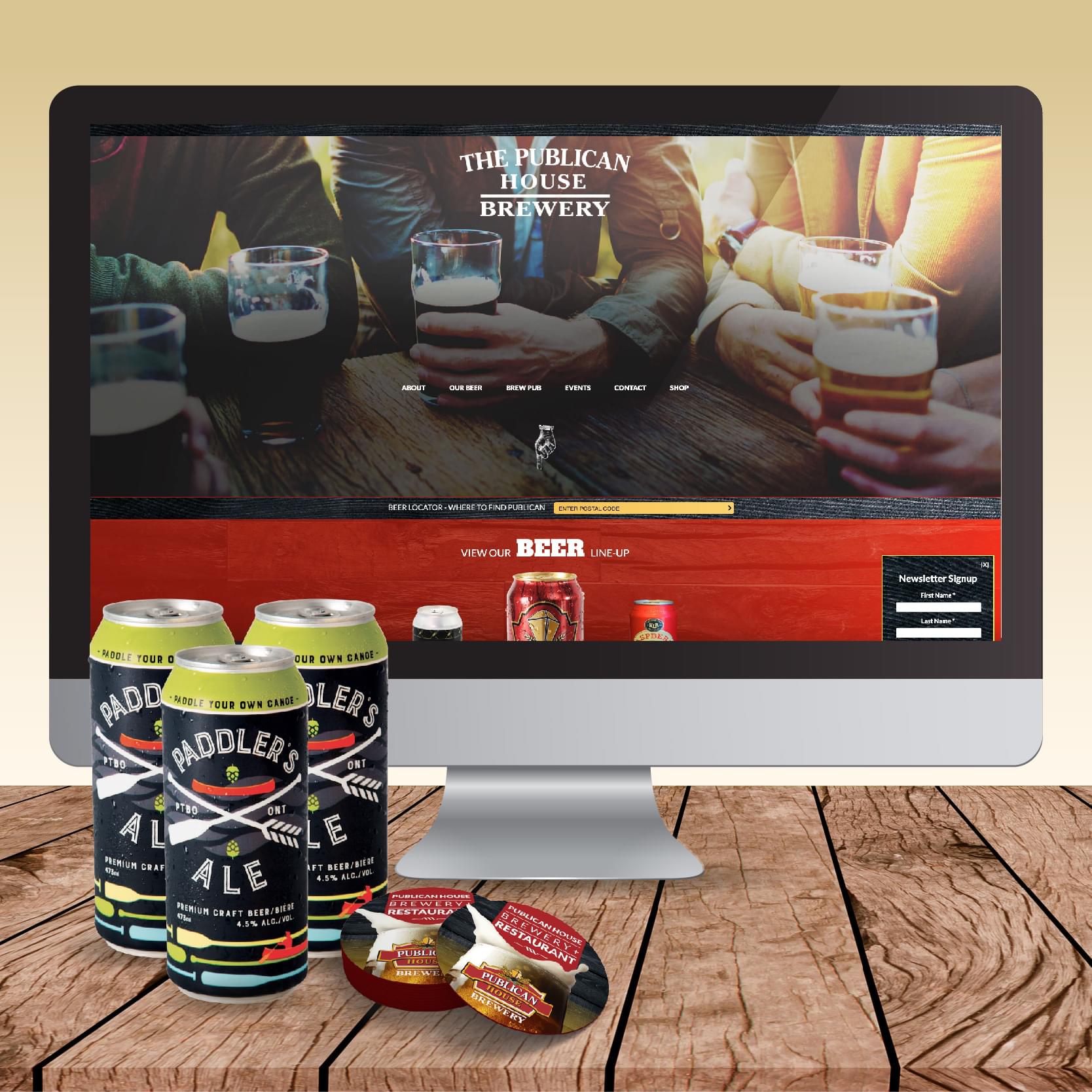 A logo of sorts was crafted for Paddler’s Ale to help it jump off the shelves, and aided in subsequent merch. Bold, simple line work and bright colour was used to help distinguish it from Publican’s other beers, and to attract thirsty shoppers.